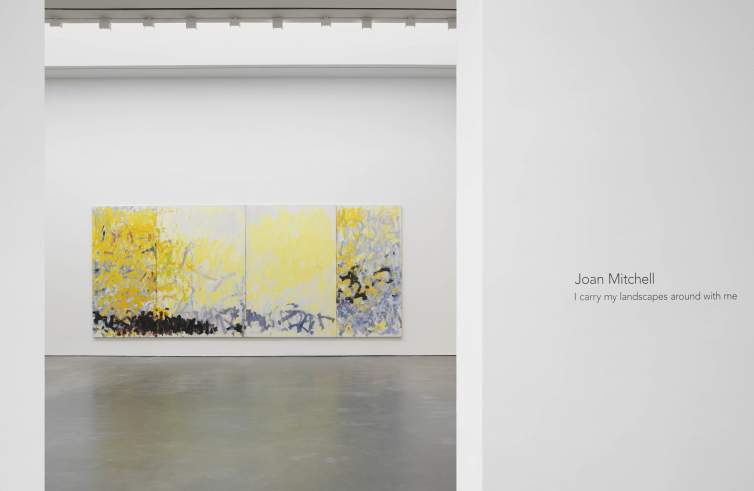 David Zwirner will present Joan Mitchell: I carry my landscapes around with me, the first exhibition to focus on Mitchell's multipaneled paintings, at the gallery’s 537 West 20th Street location in New York. The exhibition opens May 3, with a reception from 6-8pm, and runs through July 12, 2019.