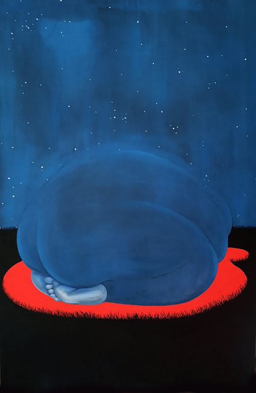 I create emotional landscapes: representations of psychological states, memories, and emotional ties, often staging a red, bent figure in tableaux where the natural world and architecture blend and reflect each other. The female forms in my paintings become conduits for exploration of feminine and Black identities.”