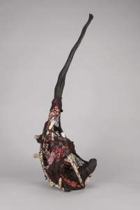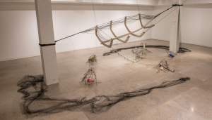 Repurposing discarded materials is a motivating force in my sculptural practice. For the past decade, my work has primarily responded to markers of crisis and resilience observed on the Gulf and Pacific coasts. Entwined by methods drawn from net making, basketry, and weaving, they pit the transformable forces of nature against suggestions of human industry and agency.”