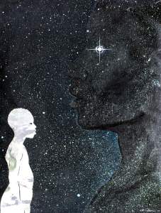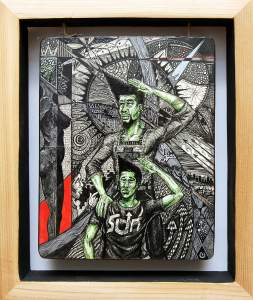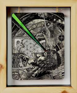Through imagined futures, present perspective, and our ancient truth, I create a juxtaposition of images that become pictographic formulas which redefine the product of our cultural significance in history.”
