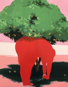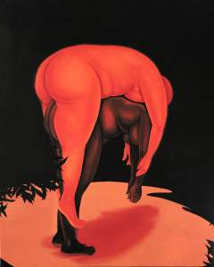 I create emotional landscapes: representations of psychological states, memories, and emotional ties, often staging a red, bent figure in tableaux where the natural world and architecture blend and reflect each other. The female forms in my paintings become conduits for exploration of feminine and Black identities.”