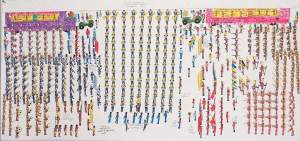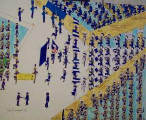 Marching bands are a big part of New Orleans’ culture, but since Hurricane Katrina, many are struggling, especially high school bands. My work serves as an illustrative reminder of an activity that not only encourages creative thought processing, but also engages youth with their community and with each other.Using photographic documentation of these bands in action, I recreate their vibrant pageantry with Sharpie pens and color acid-free markers on poster-board or paper in the same visual manner as Egyptian hieroglyphics, hopefully leaving behind a sacred reminder of a vibrant part of my hometown’s identity. I keep the FAITH! God is good all the TIME!!”