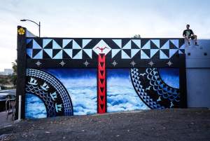 Cory Kamehanaokalā Holt Taum is a Hawaiian artist who lives and works in Hawaiʻi. He is an active cultural practitioner and mural artist sourcing his inspiration from the many stories and teachings of his ancestors and their relevance in today's drastically changing Hawaiʻi. Cory is fascinated with the masterful, bold, and powerful visual forms and patterns developed by the original people of Hawaiʻi. He is best known for his iconic, large-scale paintings on a wide range of surfaces from rusted metal to moss covered concrete to an invasive Albezia tree. With the surfaces he chooses as his canvas, he hopes to encourage the viewer to question the current state of urbanization and its effect on the health of the land and the people of Hawaiʻi. Cory has worked on numerous large-scale community murals as well as participated in multiple artist residencies and international mural festivals throughout the Pacific.