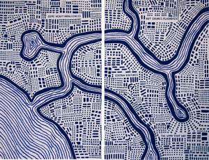Dahlia Elsayed combines text and imagery to create visually narrative paintings that document internal and external geographies. Her work is informed by poetry, conceptual art, comics and cartography and employs symbols of hard data - text, geologic forms, geographic borders, signs/markers, coastlines, tide schedules - to frame the soft data of the ephemeral. Her paintings, prints, and artist books have been shown at galleries and art institutions throughout the United States and internationally, including the 12th Cairo Biennale, BravinLee Programs, Clementine Gallery, and Aljira Center for Contemporary Art. Her work is in the public collections of The Newark Museum, The Zimmerli Museum, Johnson & Johnson Corporation, and the New Jersey State Museum, amongst others. She received her MFA from Columbia University and lives and works in New Jersey.