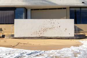 A handful of sand thrown against a white wall after work, amid a rising tide (Wednesday)