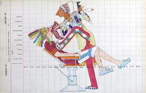 Dwayne “Chuck” Wilcox is an enrolled member of the Oglala Lakota and a lifelong producer of art. Chuck was born in Kadoka, South Dakota, attended Crazy Horse High School, and served in the military for four years. While he has no formal art training, Chuck had his first commissioned art piece in 1974, which eventually lead to a full-time career. Chuck’s chosen medium is ledger paper, the first paper to make its way to the American Great Plains in the 19th century. He uses this medium to convey a living culture through humor, dance, or vices of the modern times. Chuck’s goal is to share a continuing view of how natives see the European culture and to reverse the paradigm. His work has been exhibited at the National Museum of the American Indian in New York City; Gilcrease Museum, Tulsa, OK; Red Cloud Heritage Museum, Rine Ridge, SD; Peabody Essex Museum, Salem, MA; the University of Alaska, Anchorage; among many other venues.
