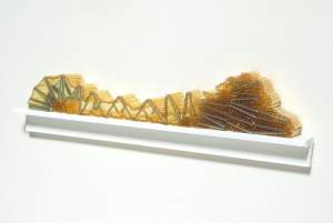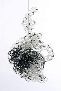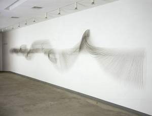 Elizabeth Simonson is a visual artist based in Minneapolis who creates pieces using everyday materials such as tape, wire, fishing line and beads, which explore patterns found in nature, algorithms, and imperfect systems. Receiving her MFA from Hunter College, Elizabeth originally moved to New York to pursue a career as a professional ballet dancer with the Feld Ballet. Her familiarity with time-based, performative art forms has informed her exploration of sequentially based installations that often take weeks to construct and have at times been very temporal in their existence. Her work has been shown in public institutions that include the Walker Art Center, the Weisman Art Museum, the Kohler Art Center, and Austin Museum of Fine Art, in addition to galleries in Los Angeles, Minneapolis, and New York. Her work can be found in collections of the Museum of Modern Art, Walker Art Center, Plains Art Museum, and the Minnesota Museum of American Art.