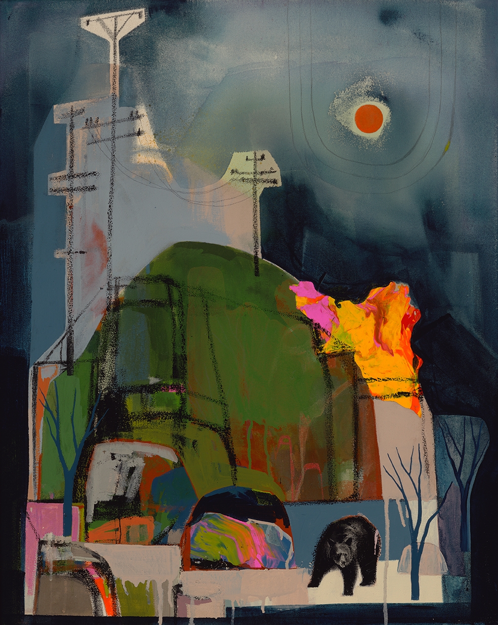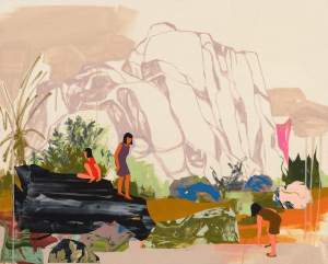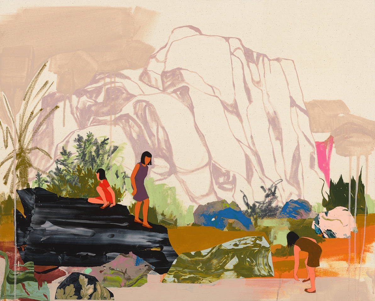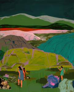Mi obra reciente presenta paisajes de ensueño en perspectiva plana. A diferencia de la pintura paisajista europea, la tradición paisajista coreana no simula la percepción de la profundidad, y las figuras humanas, si es que están presentes, aparecen disminuidas por su amplio entorno. Me influye este estilo, y en particular cómo una perspectiva plana facilita formas gestuales y simbólicas de interpretar los entornos y las relaciones.”