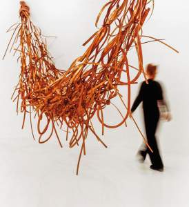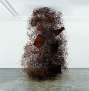 Science and philosophy have been primary sources of inspiration for my sculptures. By creating relationships between industrial materials, I think about time, existence, the state of things, how things evolve, their becoming, and how they move."”