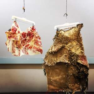 Gabrielle Vazquez is a Brooklyn based multi-media artist of Puerto Rican and Dominican descent who uses fashion as a medium for fine art, with a focus on language and colonial structures in the Americas. She is a senior at Parsons School of Design, where she is in the process of developing her thesis project on Taíno iconography and language. Using textiles as a political tool, Vazquez aims to challenge the narrative of indigenous extinction, often through highlighting memory attached to materiality. By engaging in projects related to cultural reclamation and identity, Vazquez investigates the consequences of systemic erasure, how we can question our language and existing institutions to invoke necessary change, and methods of elevating silenced voices.