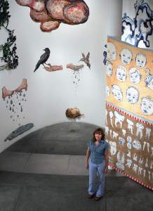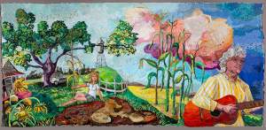 Gina Phillips is a mixed media, narrative artist who grew up in Kentucky and has lived in New Orleans since 1995. The imagery, stories and characters of both regions influence her work. She started her career as a painter, but over the years, has increasingly incorporated fabric and thread into her work. Phillips has a BFA from the University of Kentucky and an MFA from Tulane University. Her work has been exhibited in galleries and museums across the country, including in the State of the Art exhibition at Crystal Bridges Museum of American Art, and at the Asheville Art Museum, Pepperdine University, Ballroom Marfa, The New Orleans Museum of Art, and the 21c Museum in Louisville, KY. Her work was also included in the Prospect.2 Biennial and at VOLTA8 as part of Art Basel in Basel, Switzerland. Phillips’s work has been featured in Art in America, The Times-Picayune, and ARTNews, among others. Phillips had a mid-career retrospective at the Ogden Museum of Southern Art, entitled I Was Trying Hard to Think About Sweet Things.