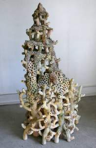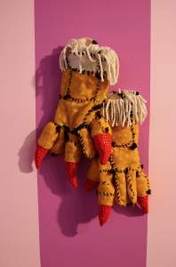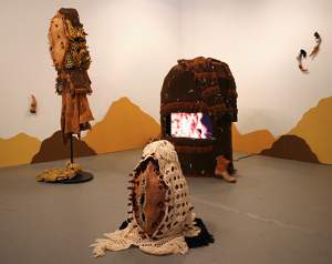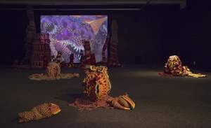 I’m particularly interested in vulnerability and how organisms adapt to their environment. The narratives in my work are reinterpretations of mythological themes I learned from childhood. Utilizing sculptural suits that connect me to these spaces, I explore the origins of these characters, their relationships to their environment, and spiritual growth.”