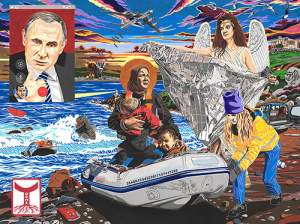 I address social amnesia through my art, with the work acting as a social memory for tragic events so quickly forgotten in our information age. As part of my research process, I have volunteered in Nepal after the devastating earthquake, and worked in Greece to assist with the refugee crisis. The stories I gather in this fieldwork are then used to construct my painted and sculptural compositions. This practice represents my belief that art should be accessible to its viewers, and aims to inspire empathy and action in my audience.”