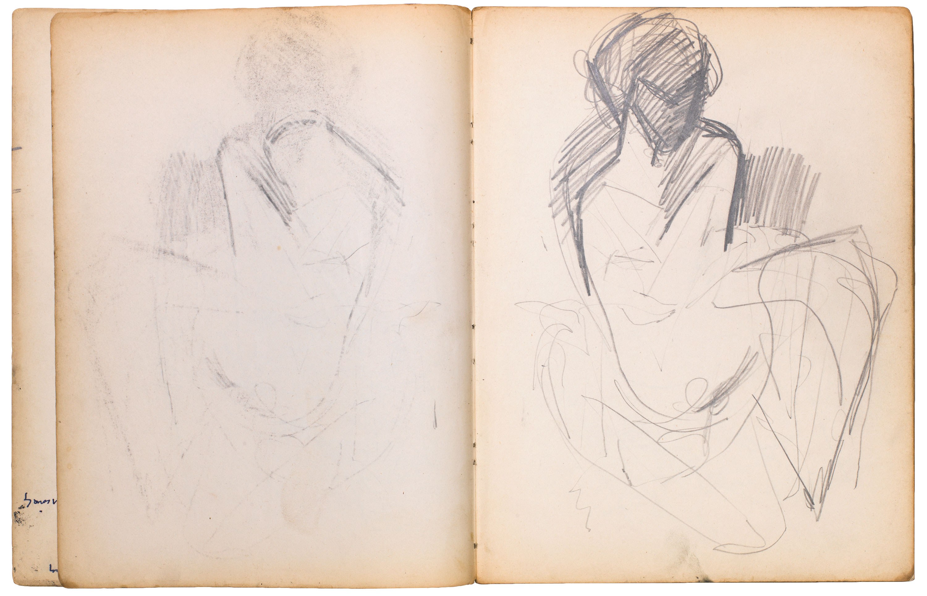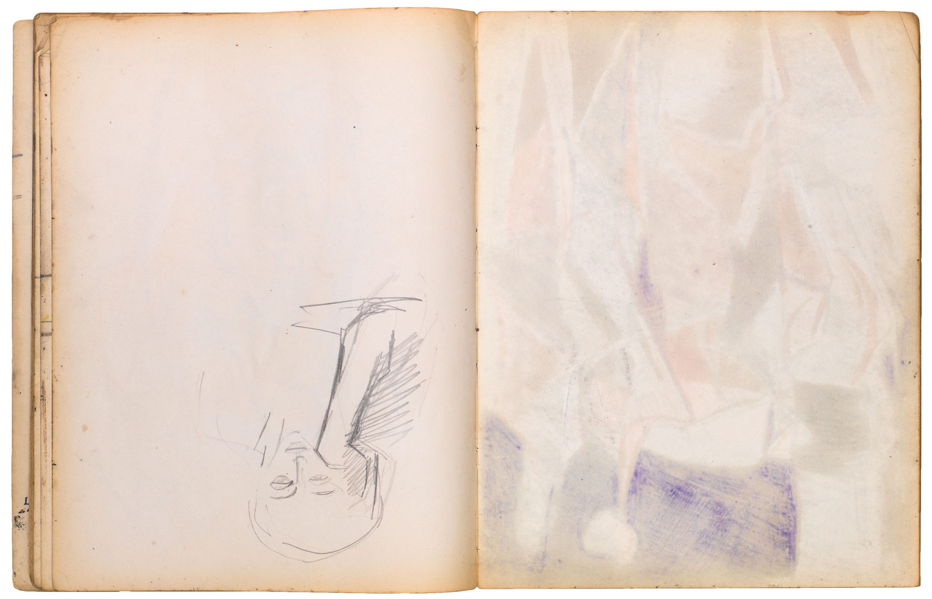 Graphite pencil, pen and black ink, black wax crayon and colored wax crayon on paper, 176 pages (blank spreads not pictured)