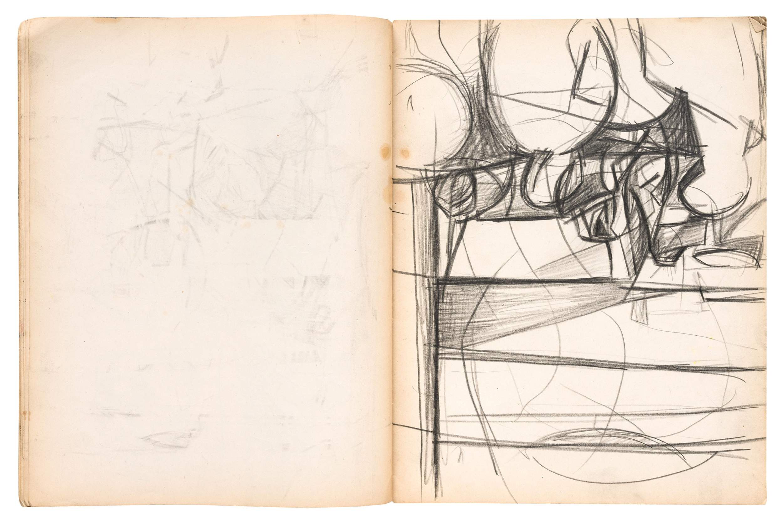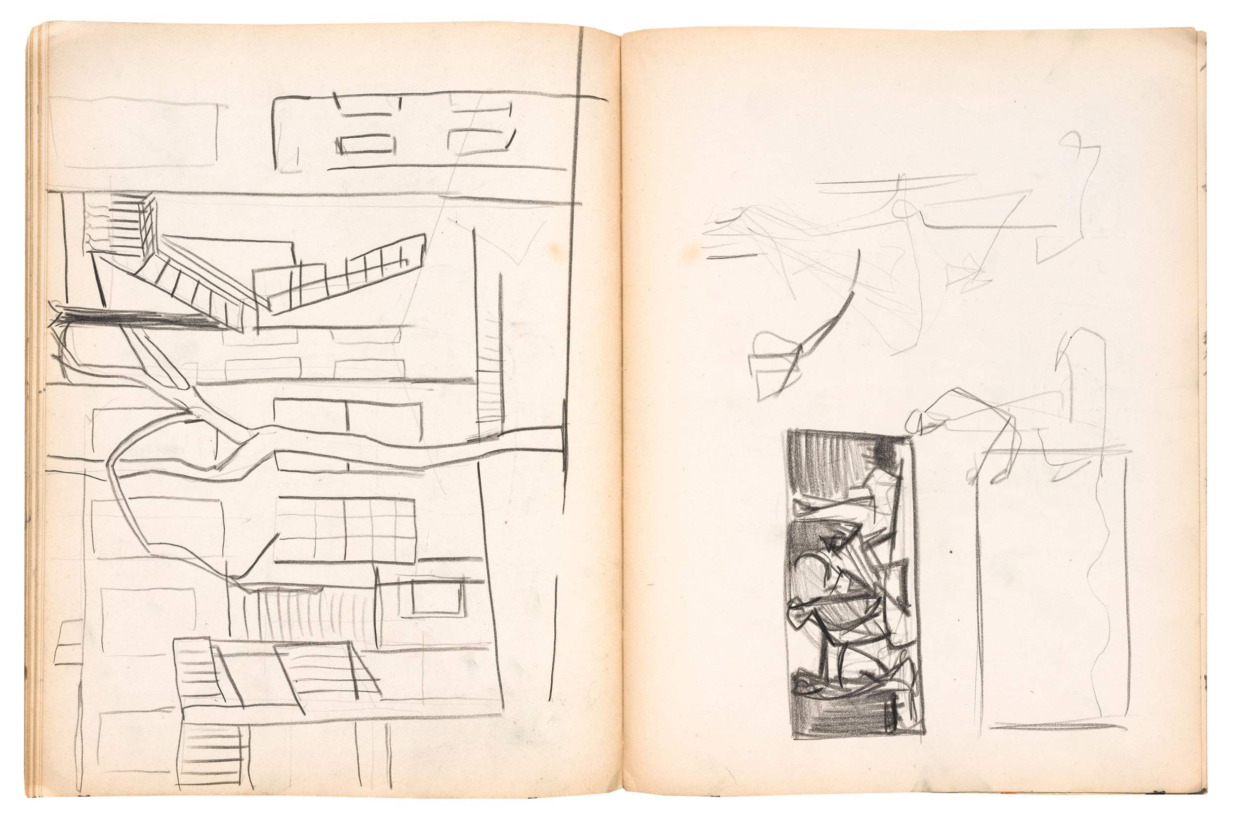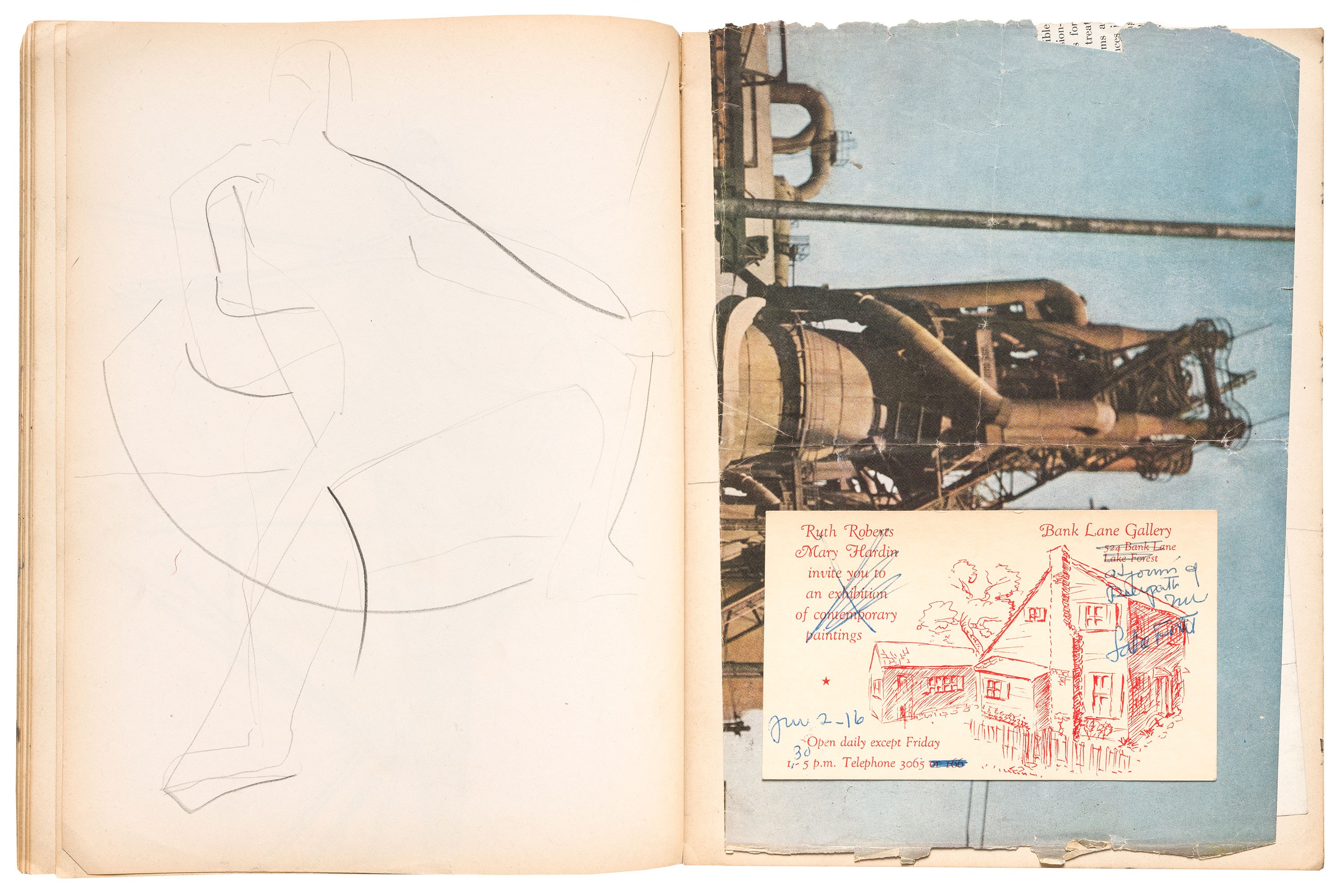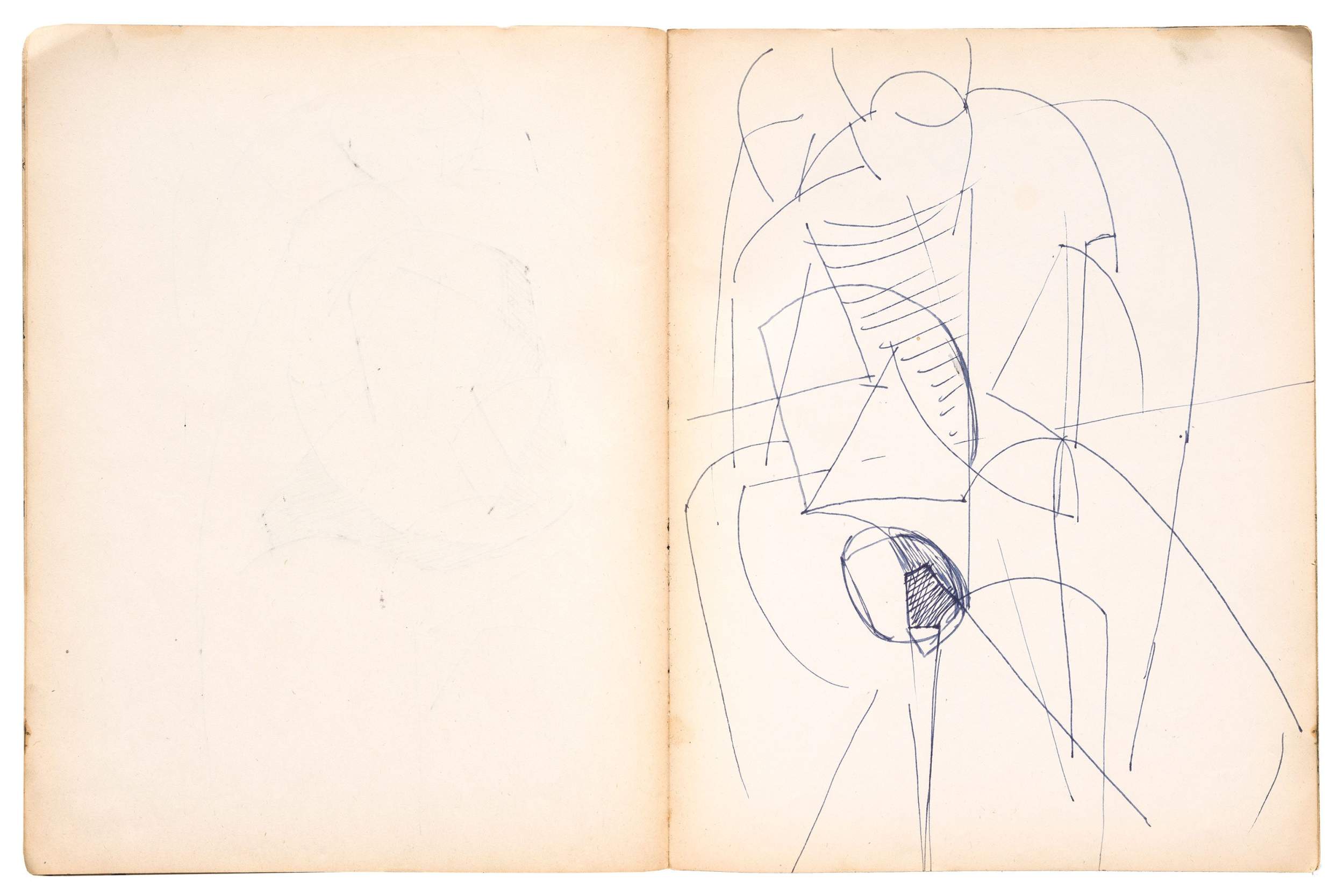 Wax crayon, fabricated graphite pencil, graphite pencil, pen and ink, brush and ink, opaque watercolor, and fiber-tipped pen on paper, 90 pages