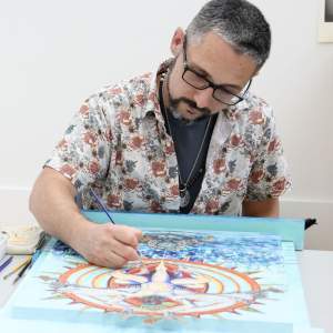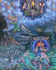 Inspired from an early age by the imagery and mythology of the Nahuas, whose pictographic writing system culminated in a conceptualization of painting that was synonymous with poetry, my current artistic practice has become rooted in the worlds of the literary and the linguistic. Deriving metaphorical motifs from a variety of disparate cultural and religious traditions, my work is a tool for self-examination and psycho-spiritual development.”