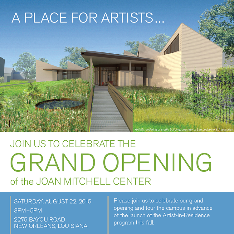 Full invitation below, we hope you will join us! For more details on the completion of the Joan Mitchell Center campus and the inaugural Artists-in-Residence, please read the full press release here.