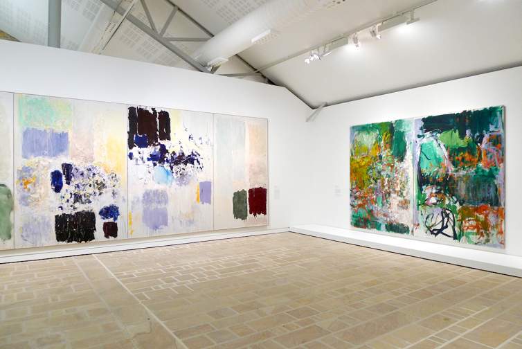 Installation view of Mitchell/Riopelle: Nothing in Moderation at Fonds Hélène et Édouard Leclerc, photo by Laura Morris.