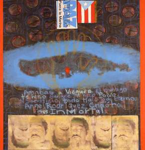 Painter, photographer, printmaker, and video artist Juan Sánchez was born to immigrant working-class Puerto Rican parents in Brooklyn, New York. He is part of a generation of artists-such as Coco Fusco, Guillermo Gómez-Peña, Pepón Osorio, and Papo Colo-who in the 1980s and '90s explored questions of ethnic, racial, and national identity in their work. Among numerous group exhibitions in national and international gallery and museum venues, Sánchez had solo exhibitions at BRIC Arts/Media House, P.S.1/MoMA Contemporary Art Center, El Museo del Barrio, Exit Art, Bronx Museum of the Arts, the 5th Havana Biennale, and El Museo de Historia, Antropologia y Arte, Universidad de Puerto Rico. Among several permanent collections, his art is in the Metropolitan Museum of Art, Whitney Museum of American Art, Museum of Modern Art, El Museo del Barrio, and The Smithsonian Museum of American Art. Sánchez has been awarded grants and fellowships from the John Simon Guggenheim Foundation, the Joan Mitchell Foundation, New York Foundation for the Arts, the Pollock-Krasner Foundation, and the National Endowment for the Arts. Sánchez earned a BFA from The Cooper Union School of Art and a MFA from the Mason Gross School of the Arts of Rutgers University. He is Professor of Art at Hunter College in New York City.