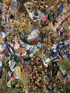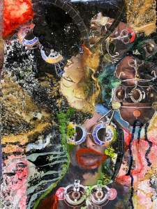 Working in the aesthetic traditions of Black surrealism and ecofeminism, my daily practice includes art-making, gathering materials and information, professional development, and study. My paintings, sculptures, and installations are grounded in themes of social and environmental justice and rely on humor, ritual, music, movement, and nature.”