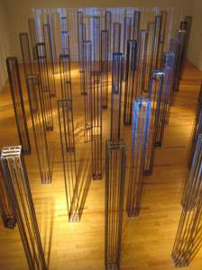 My work negotiates ideas of containment and exposure, agency and restraint. Process and materials transform physical spaces into unique environments that comment on contemporary issues. I often construct narratives through symbols and objects that address the impact of historical events on the present day. Organic elements are sometimes included in my installations, and the changes they undergo during the course of an exhibition metaphorically reference the nature of culture as an evolutionary process.