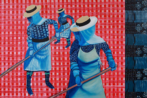 Laura Kina’s artwork focuses on themes of distance, belonging, the fluidity of cultural difference, and the slipperiness of identity. Okinawan and Hawai‘i diaspora and mixed race representations are subjects that run through her work, founded on autobiographical impulses while drawing inspiration from popular culture, textile design, personal and community photographic archives, and oral history interviews.