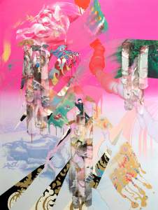 I interpret moments that have shaped racial, cultural, and religious conflict and assimilation in America, creating a frenetic visual amalgamation of art historical references, landscapes indicted in violence and tragedy, and civil rights icons in oil and on silk. Through a type of blended history painting, my work refers to the complex cultural histories that mirror the American lens.”