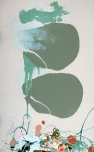 Painting untethers a mesh of past, present, and future. Intuitive and intentional, the motion and emotion of making is moving towards the stillness of viewing ~ wavering in the density and airiness of our coming and going. Abstraction, a siren for expansive thinking, offers generous clarity and strangeness; also, brutal, exquisite, and base forms of beauty, anchoring multiplicities with many forms of yes.”
