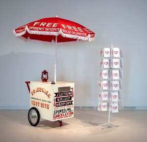 Meg Turner combines intimate portraiture, sign painting, and printmaking with a study of propaganda and economic policy. Inviting friends and strangers into text-heavy sets to create portraits, Turner uses photography, installation, and humor to harness collective longing, fantasy, and ecstatic exhibitionism. Turner moved to New Orleans in 2009 to build the New Orleans Community Printshop. She received her BFA from The Rhode Island School of Design in 2008 and her MFA from Columbia University in 2018, where she was a Leroy Neiman Center for Print Studies Print Fellow. Turner is an Adjunct Professor of printmaking at Parsons School of Design and Columbia University in New York City. Her work has been shown in solo shows at The Contemporary Arts Center, Good Children Gallery, Scott Edwards Gallery, and The Alvar Public Library in New Orleans.
