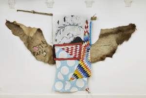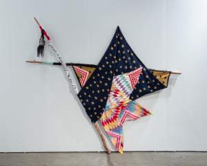 I developed my studio practice using visual archives, history, gesture, materiality, and personal experience as the foundation to create painted textiles and sculptures as Power Objects. Through auto-ethnography, I attempt to move ‘Indian’ outside of governing discourses to offer a visual genealogy that refuses to line up with the many constructed existences of Native Americans.”