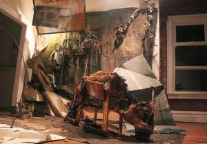 Voraciously drawn or forcefully bent, my approach to sculpture, installation, and drawing is a gestural and automatic response to internal and external environments. Line is a constant in my work, as textural mark-making from performative movement or layered objects that connect symbolic narratives. My body is a tool for making, and the visible, labored aesthetic in steel, glass, charcoal, and mixed media is an attempt to reiterate the transformational potential of material to reflect the essence of self in place.”