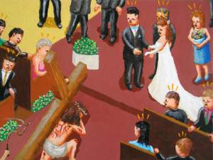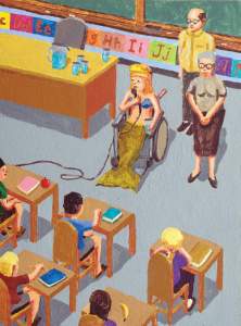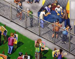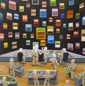 I am interested in how accessible signifiers can produce relationships that speak to the challenges of making sense of the world. Humor plays an indispensable role in my paintings—drawing viewers to consider what is simple and what is complex.”