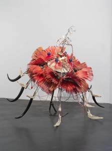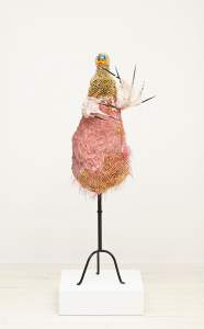 Rina Banerjee is a mid-career artist based in New York City. Originally from Kolkata, she creates multi-faceted sculptures, paintings, and drawings, fusing boundaries between East and West. Banerjee’s choice of material and subject matter question the experiences of femininity, climate change, migration, commerce, and identity in a globalized world. Her sculptures place in conversation cultural objects, textiles, domestic items, mythologies, as well as the material residue of colonialism.