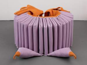 I utilize the language of soft sculpture to call to mind very real power structures while simultaneously subverting them, highlighting an absurdity, an impotence, or a fundamental flaw inherent in those structures. I mine societal expectations of and relationships to well-known objects—and twist them in the process.”