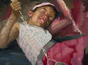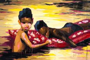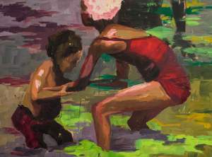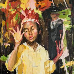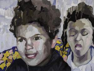 I provide visibility to a cultural in-between-ness by using stills from super 8 footage taken by my German mother and African American father in the 1960’s and 1970’s. These photographic stills are used as reference material for my paintings along with other personal or found images that support the narrative of my work.”