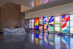 My exuberant abstractions often extend beyond the canvas into installations, site-specific painting, stained glass, and furniture works that play with and meld references from visual art, music, and our culture at large. The muscular, mostly gestural paintings embrace a pleasure-oriented, strategically intuitive power that both undermines and expands our expectations of serious abstract painting.”