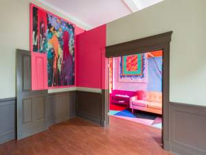 Sarah Cain moves beyond the traditional notion of painting, redefining abstraction in feminist terms as an architecture for transformative, embodied, emotive experience. She has been the subject of solo exhibitions at National Gallery of Art, Washington, DC (2021); Momentary (2021); The Tang Teaching Museum ( 2021); The Aspen Art Museum (2017); Institute of Contemporary Art Los Angeles (2017); Contemporary Art Museum Raleigh (2015); and the Museum of Contemporary Art San Diego (2015). Her work has been featured in The New York Times, ELLE, Town & Country, Los Angeles Times, Artforum, Architectural Digest, and Art in America. Her work is held in public collections, including Los Angeles Contemporary Museum of Art, San Francisco Museum of Modern Art, Perez Art Museum Miami, and The Blanton Museum. Cain lives and works in Los Angeles.