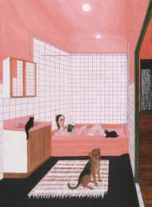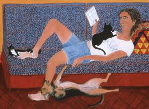 Over a 30 year practice themes have emerged in my work: life stories, travel, community activism, home and studio. I paint about my life but these are not solely my stories. My aim is to be straightforward and honest in both subject matter and the creative process; to make the personal universal.