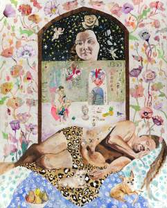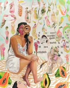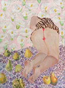 The imagery I make explores the relationships between memory, impulse, sexuality, plants, myth, and anatomy. My creations are a place in which objects, figures, animals, patterns, flora, and fruit become cultivated landscapes of metaphor that strive to reclaim and amplify sensual agency in the body.”