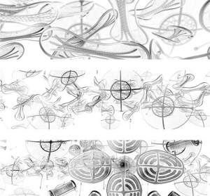 I then take the storyboard ideas and model the forms in Maya, a 3D animation program. Then I begin the laborious process of animating the forms to follow the mathematical theory. Sound is later added to the final rendering of the work to solidify the animation. Thus, with the sound, the visual synthesis of the animation brings physical movements to the final drawings.