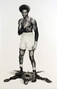 Vincent Valdez was born in San Antonio, TX. He received a full scholarship to The Rhode Island School of Design and completed a BFA in 2000. Valdez's life and career have focused on the practice of drawing and painting. Recognized for his intensive devotion to skill and detail, his monumental portrayal of the contemporary figure remarks on a universal struggle within various socio-political arenas and eras. His work has been included in exhibitions and collections at numerous venues, such as The Museum of Fine Arts Houston, The Ford Foundation, The Blanton Museum of Art, The Snite Museum of Art at Notre Dame, Artpace, The Parsons School of Design, OSDE Buenos Aires, among others. Valdez is a recipient of the Joan Mitchell Foundation Painters & Sculptors Grant (2015), and attended residencies at the Skowhegan School of Painting (2005) and the Kunstlerhaus Bethania in Berlin (2014).